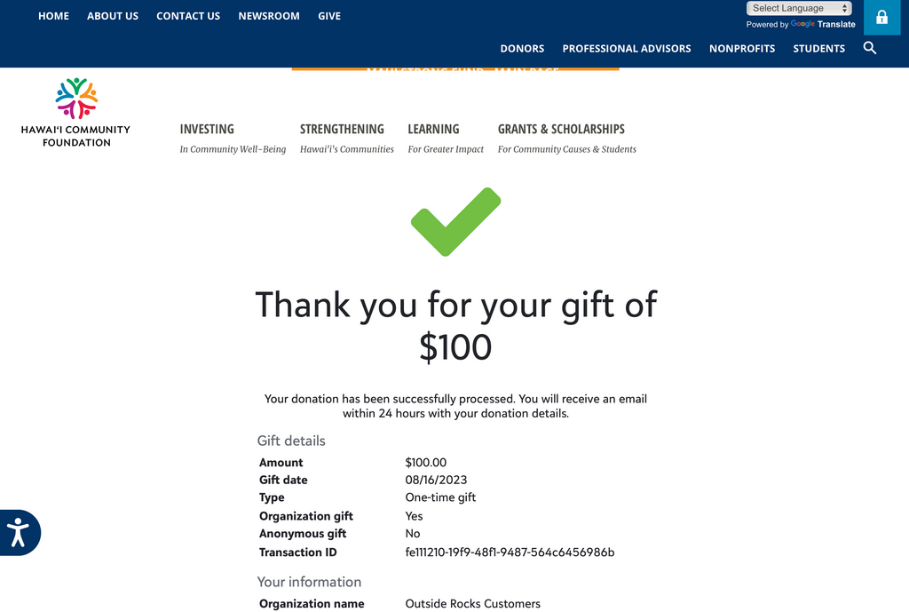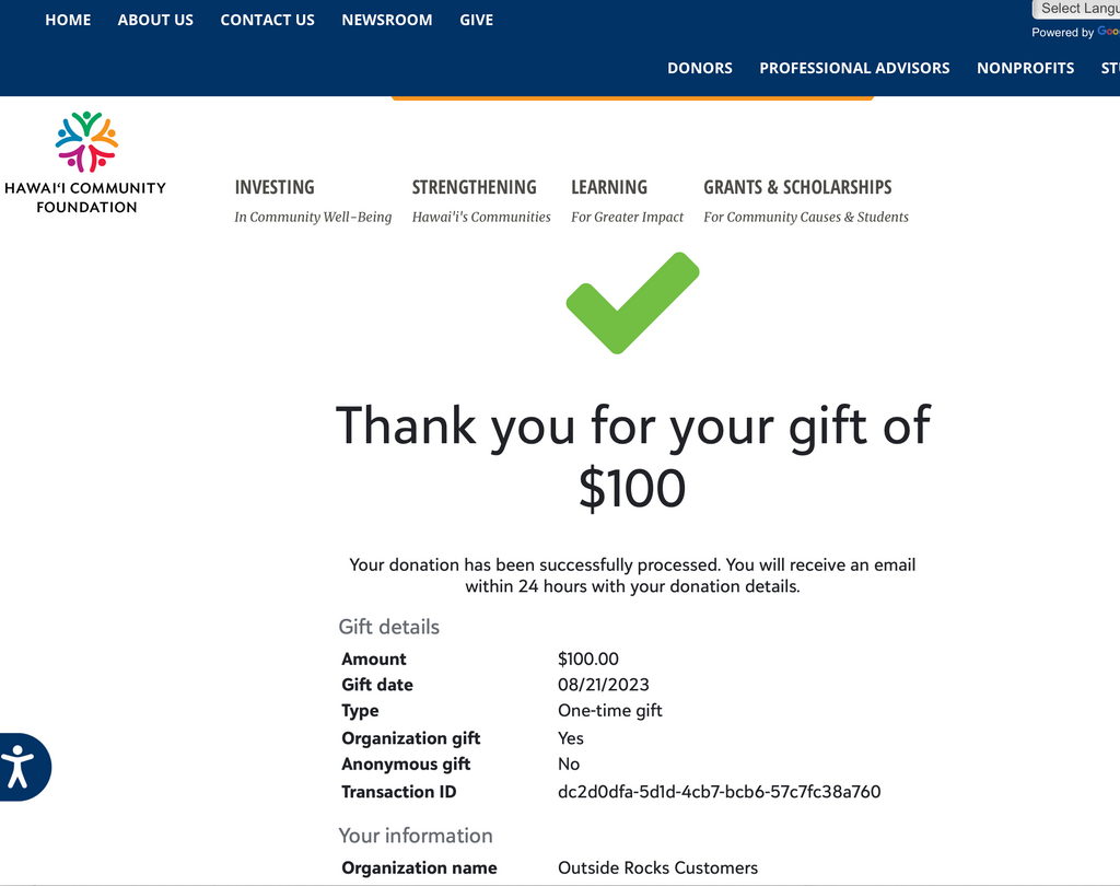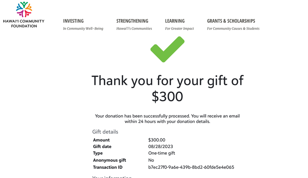 Thanks to you, $330 more dollars has gone to the Hawaii Community Foundation. We've paused orders for now to catch up on the shipping. We will be adding the hat back to our inventory. It will be $22 and if you want us to pass on the $10 donation, it will be $32. Mahalo for your kindness in helping Lahaina!